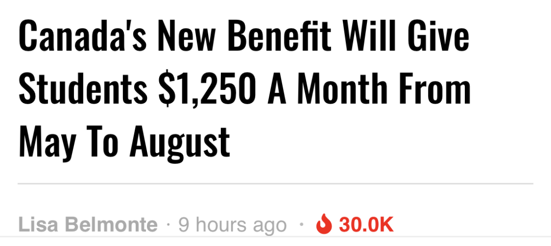 加拿大政府又又又發(fā)錢了!4月22日,加拿大總理賈斯汀·特魯多宣布在疫情期間學(xué)生們將獲得一項新的福利,這將立即幫助那些需要幫助的人,加拿大緊急學(xué)生福利(CESB)將從5月一直到8月,每月為學(xué)生提供$1250的補(bǔ)助,此外,如果你照顧別人或有殘疾,這個數(shù)額將增加到每月$1750。
