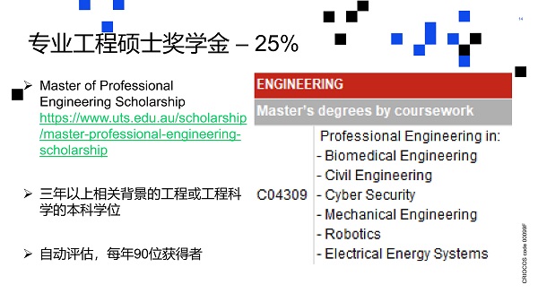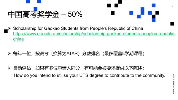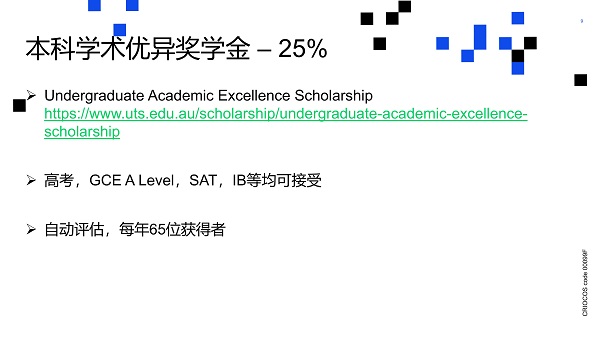 ━ 該獎學金價值為50%學費減免,五大學部各開放兩個名額,成績要求為ATAR 98或GPA 6.8/7以上