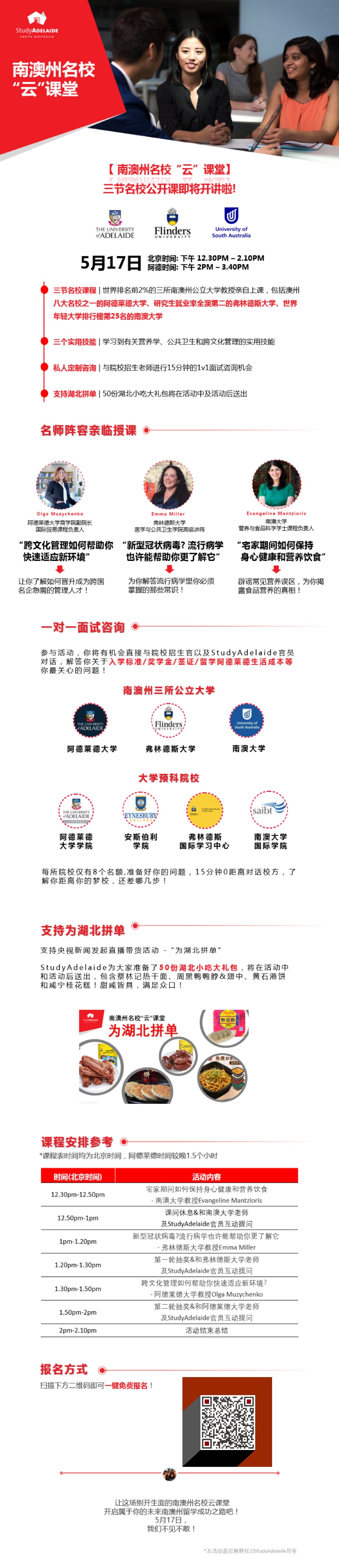 澳洲:南澳州名校“云”課堂即將開講啦!名校名師匯聚一堂,面試咨詢互動提問!