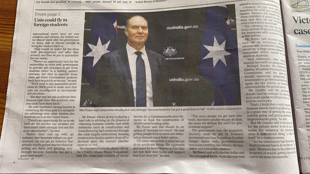 除此之外,Neville Power還對留學生表示了關(guān)愛。他提出所有的教育機構(gòu)包括大學,需和政府一起包機接回留學生。留學生群體會在本國飛出的機場和完成包機飛行后,到達澳洲機場進行病毒檢測,然后再進入澳洲本地的2周強制性隔離,最后可以回到學校上課。