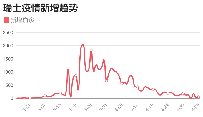 從2020年3月開始,瑞士聯(lián)邦政府就開始嚴(yán)格采取抗擊新冠疫情的一系列措施。直到4月15日8時,瑞士聯(lián)邦委員會表示,瑞士新冠肺炎疫情已過拐點(diǎn)。據(jù)5月最新數(shù)據(jù)顯示,新增病例數(shù)也逐漸下降。