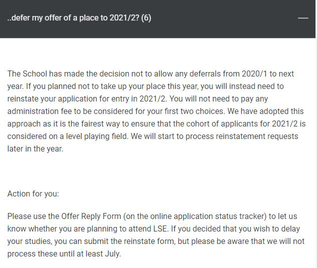 LSE官方表示:如果你現(xiàn)在已經(jīng)拿到了LSE今年秋季入學(xué)的研究生offer,但因疫情等突發(fā)原因,今年秋季不想入讀,希望保留offer延期一年入學(xué)...我們不同意!