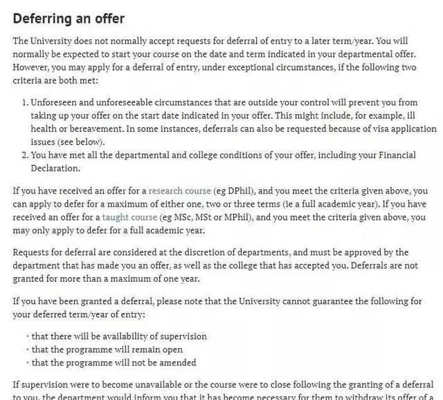 牛津大學(xué)一般不接受延期入學(xué)申請(qǐng),除了特殊原因例如疾病等,而且defer前學(xué)生需要滿足學(xué)校官方的要求。