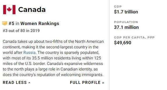女性權(quán)益:加拿大全球第五