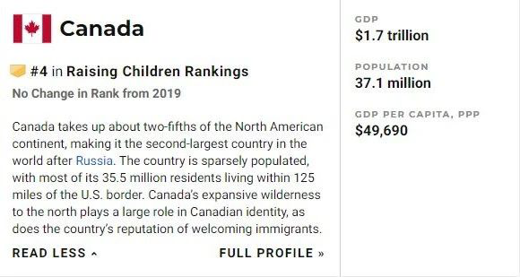 育兒:加拿大排名第四