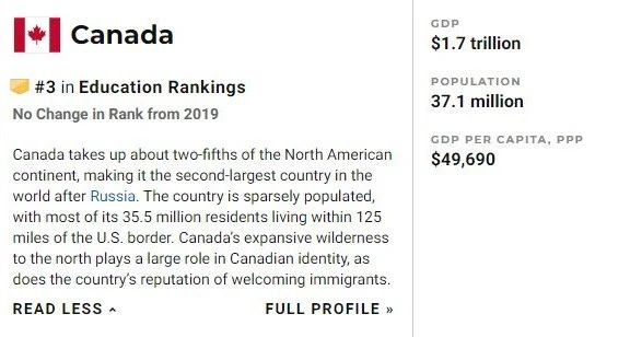 教育:加拿大全球第三