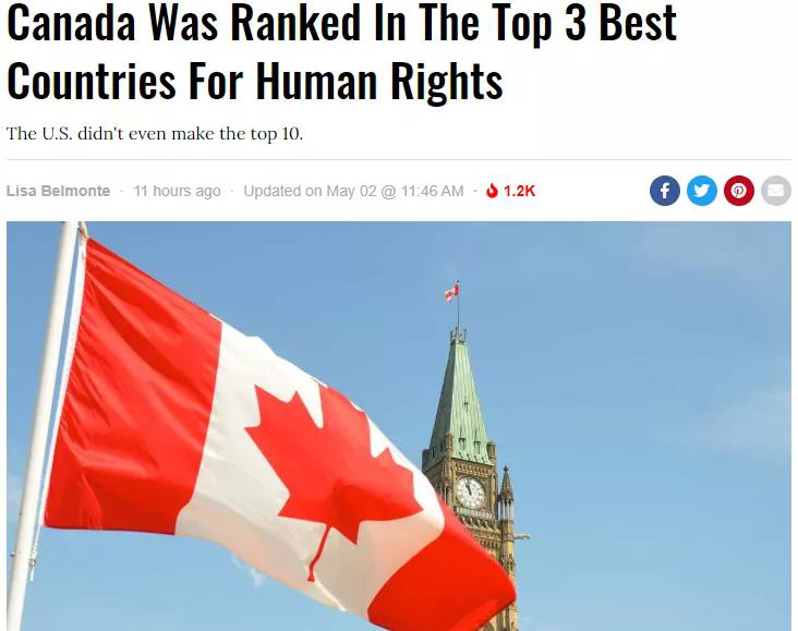 人權(quán):加拿大全球第三
