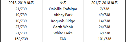 可以看到,目前中國學生常申請的Oakville地區(qū)的幾所中學,排名普遍上升。百年老校OT雖然排名略有下降,但相信依然不會影響該校在當年人心中的好印象。畢竟像這樣有百年底蘊的學校,可是不多了呢。