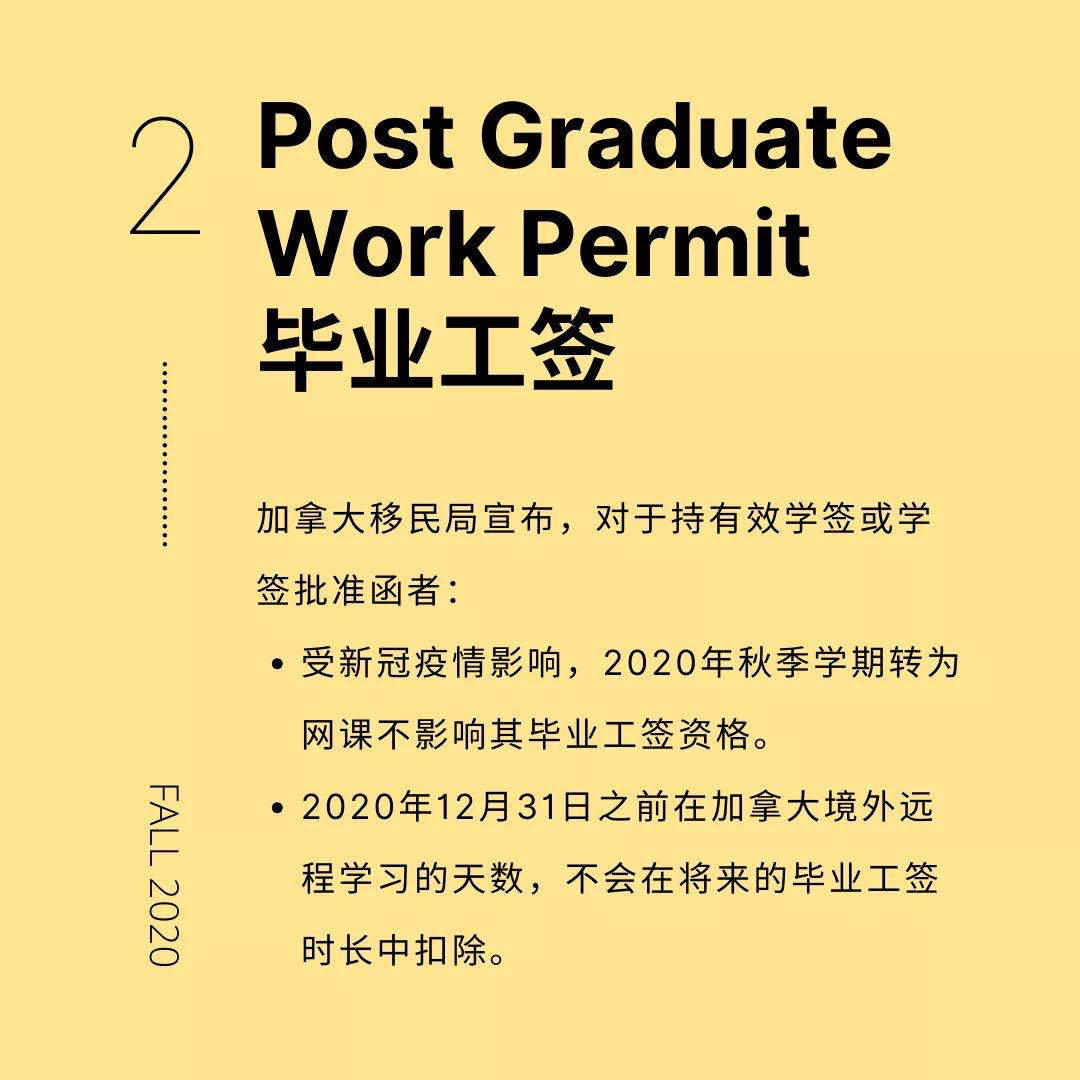 基于加拿大移民局原有的政策,一般網(wǎng)課是不計(jì)入PGWP的,但是由于疫情對(duì)留學(xué)生產(chǎn)生了重大的影響,外加受到健康和旅行的限制,很多留學(xué)生無(wú)法順利返校,因此,加拿大移民部允許留學(xué)生在2020年秋季學(xué)年留在海外完成50%的線上課程,并在之后返回加拿大完成整個(gè)課程后,仍有資格獲取得畢業(yè)工簽。