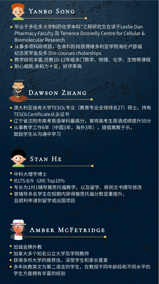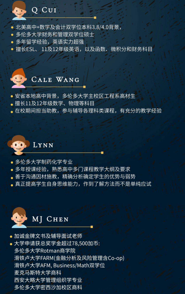 我們自2016年在溫哥華和多倫多兩地分別落地后,已經(jīng)在本地教育行業(yè)立足和發(fā)展了四年,積累了非常豐富的服務(wù)留學(xué)生群體的經(jīng)驗(yàn),以及本地權(quán)威優(yōu)質(zhì)的教育輔導(dǎo)師資團(tuán)隊(duì),無論是抵達(dá)加國不久仍處于中外學(xué)習(xí)習(xí)慣過渡期的newcomer,還是已有幾年留學(xué)經(jīng)驗(yàn)面臨升學(xué)壓力的畢業(yè)黨,我們的學(xué)術(shù)顧問團(tuán)隊(duì)都可以依據(jù)學(xué)生所需量身定制方案,匹配優(yōu)質(zhì)輔導(dǎo)老師,答疑解惑,全面提升。
