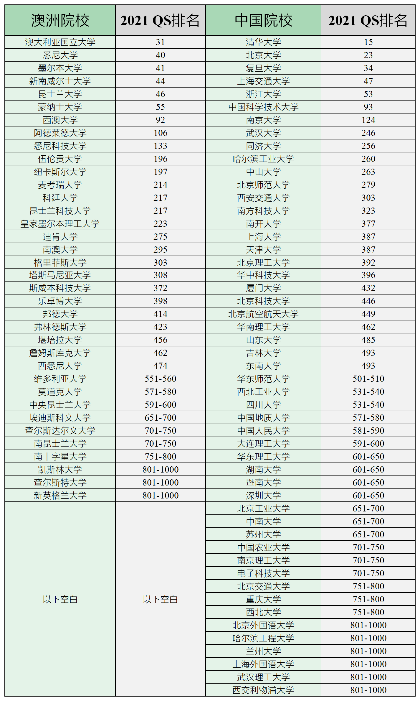 最后,小編為大家?guī)?lái)中澳院校2021 QS排名匯總,歡迎保存。