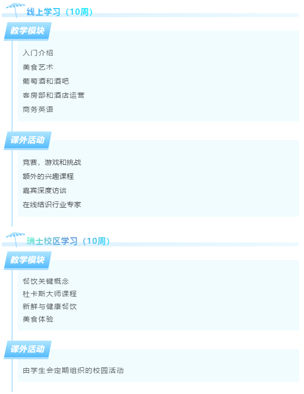 在快速而前所未有的轉(zhuǎn)變中,學(xué)校的目標(biāo)是保證學(xué)生在不耽誤學(xué)業(yè)的情況下體驗(yàn)到世界級的本科教育。所以學(xué)校開發(fā)了一套獨(dú)特的解決方案,將本科的第一學(xué)期進(jìn)化為”線上學(xué)習(xí) + 在校學(xué)習(xí)”的混合模式,大學(xué)將其稱為Glion Connect和Les Roches Connect,通過線上授課和校園教學(xué)結(jié)合的方式,開展學(xué)士項(xiàng)目第一學(xué)期實(shí)用技藝課程的教學(xué)。下面讓我們來詳細(xì)了解一下課程設(shè)置。