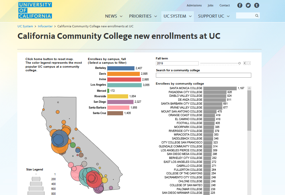 加州社區(qū)學(xué)院轉(zhuǎn)學(xué)排名目前大家可以參考的是來(lái)自加州大學(xué)官方的數(shù)據(jù)統(tǒng)計(jì),每一年加州大學(xué)都會(huì)統(tǒng)計(jì)上一年加州各個(gè)社區(qū)學(xué)院注冊(cè)進(jìn)入加州大學(xué)各個(gè)分校的人數(shù),從而我們就能夠在UC官方網(wǎng)站上參考到前一年各個(gè)社區(qū)學(xué)院的最新注冊(cè)數(shù)據(jù)和排名。2019年這一數(shù)據(jù)排名分別是Santa Monica College、Pasadena City College、Diablo Valley College、De Anza College、Santa Barbara City College、Irvine Valley College。