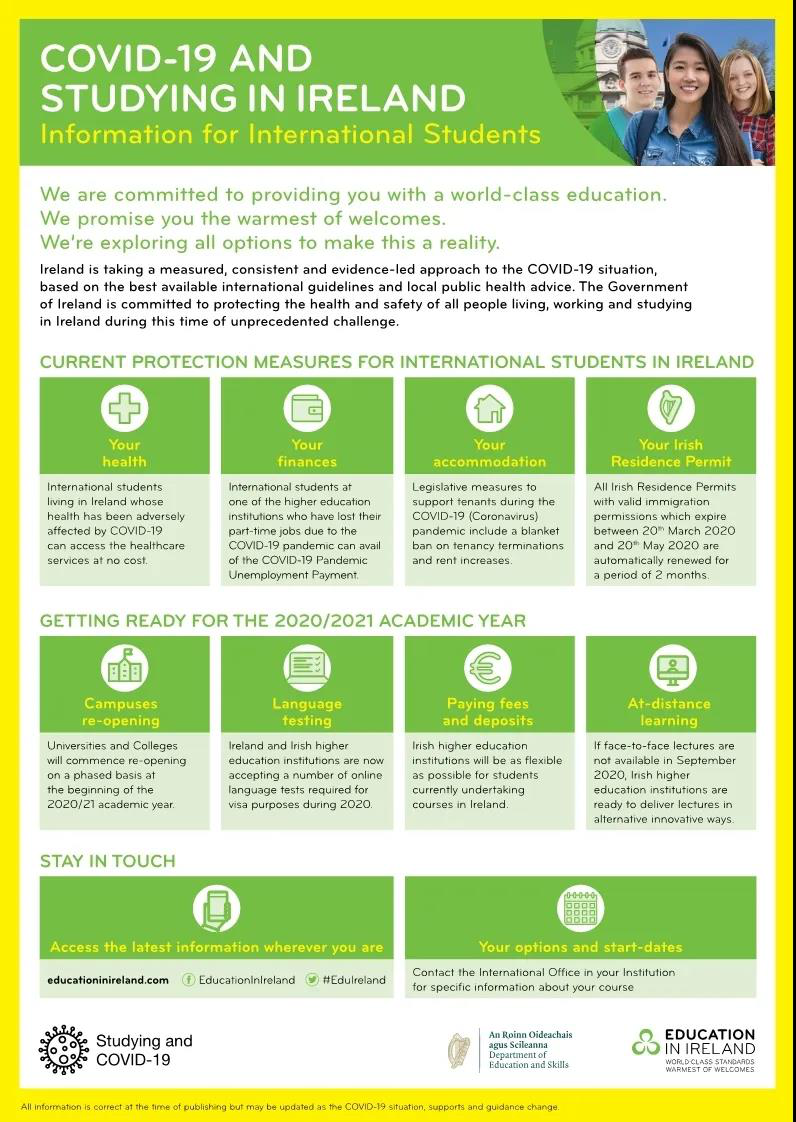 為了應(yīng)對(duì)秋季開(kāi)課,愛(ài)爾蘭政府也為國(guó)際留學(xué)生出臺(tái)了相應(yīng)的福利政策。