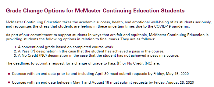 據(jù)悉麥馬大學(xué)曾在2019-2020學(xué)年,使用過(guò)pass/fail成績(jī)更改選項(xiàng),不過(guò)本學(xué)期尚未官宣。
