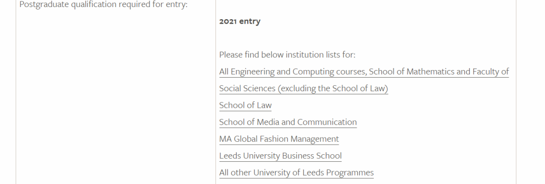 利茲大學(xué)真是一所對雙非院校非常友好的學(xué)校,它在官網(wǎng)上完整公開了接受的中國院校名單,以及每個不同院??梢陨暾埖捻椖?,可以說是非常詳細(xì)的了。