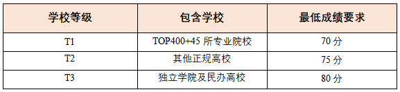 ●T3包含其他Top500內(nèi)大學(xué),均分最低要求為85分。