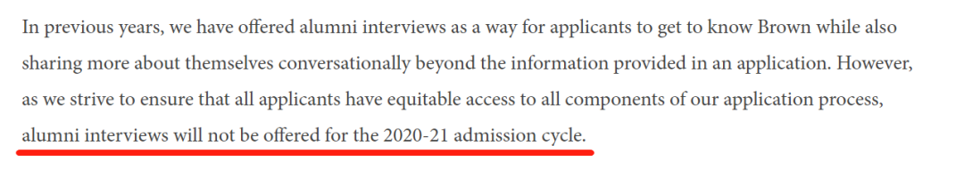布朗大學(xué):在過(guò)去的幾年中,我們提供校友面試作為申請(qǐng)人了解布朗的一種方式。但為了確保所有申請(qǐng)人都能公平地進(jìn)行申請(qǐng)流程的每個(gè)部分,2020-21年入學(xué)周期將不再提供校友面試。