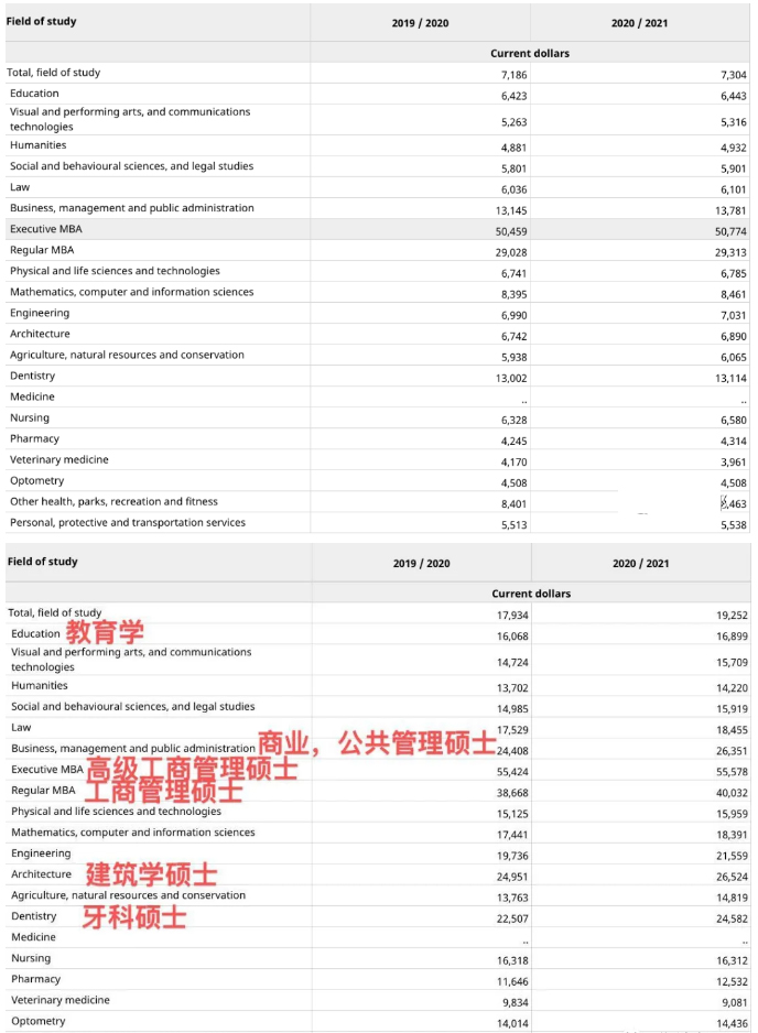 碩士研究生留學(xué)一年學(xué)費(fèi)一般在2萬到5萬加幣這個(gè)區(qū)間,不同大學(xué)和專業(yè)差異明顯。加拿大統(tǒng)計(jì)局公布了一組數(shù)據(jù),包含了全加拿大各省和各專業(yè)的本地生和國(guó)際生于2020/2021年的平均學(xué)費(fèi)。