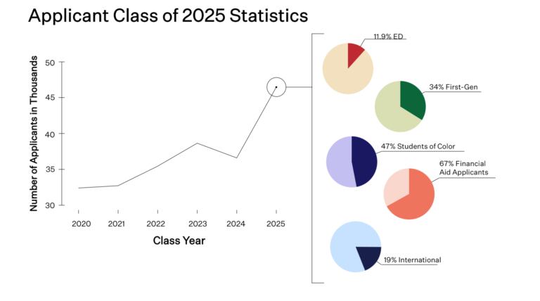 在57,000多名申請者中,有10,086名學生申請了Early Action, 747人被錄取。這些數(shù)字標志著提前申請的人數(shù)創(chuàng)下歷史新高,而早申請錄取率也創(chuàng)下歷史新低——7.4%。哈佛將大約80%的早期申請者推遲到常規(guī)招生階段。對于今年不同尋常的申請大增,哈佛招生辦公室主任說,他認為申請者的數(shù)量顯著增加是由于哈佛強大的金融援助計劃、其在線招生工作的努力、及其決定將標準化測試成績設為可選。