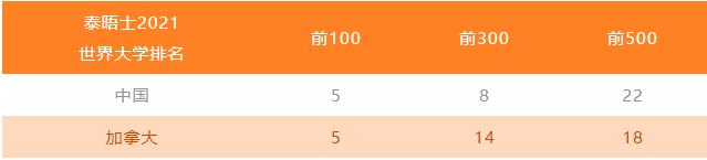 最新出爐的2021年泰晤士世界大學(xué)排名,中國(guó)在世界入圍前500名的大學(xué)數(shù)量上還略微超過(guò)加拿大。