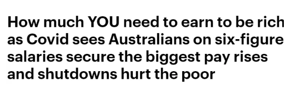 根據(jù)澳大利亞統(tǒng)計局(Australian Bureau of Statistics)周四公布的最新數(shù)據(jù),截止2020年11月,澳洲全職工作的平均年薪為8.9萬澳元。如果年收入低于這個標準,就會被視為低于平均水平。疫情爆發(fā)之后,澳洲各行業(yè)都遭受到巨大打擊,經(jīng)濟損失慘重。然而一些富人在疫情期間,竟然還實現(xiàn)了加薪!