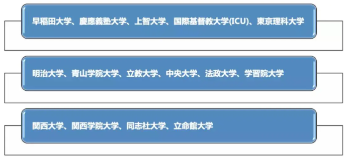 一般日本人認為,以下這些私立大學基本可以認定為MARCH(含)以上的這個級別。