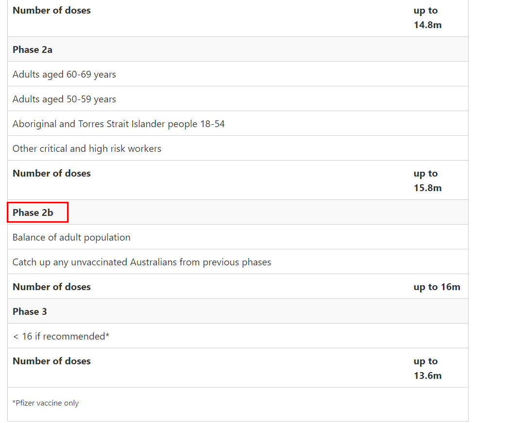 在之前公布的《澳洲疫苗推廣計(jì)劃》中被劃為1a的人群將陸續(xù)完成疫苗接種,總計(jì)67.8萬(wàn)人,主要包括: