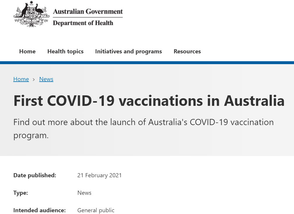 澳洲新冠疫苗有序開展接種工作