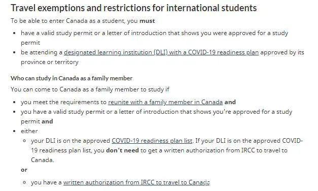 除了介紹留學(xué)生如何豁免入境限制外,還補(bǔ)充了家庭成員的入境指引