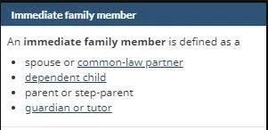 如果有直系親屬(immediate family member)和你一起入境加拿大,一位直系親屬可和你一起去加拿大,如果:
