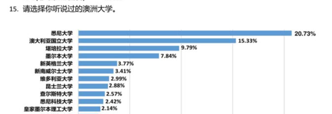 在受訪者中,人氣最高的大學(xué)是悉尼大學(xué)及澳大利國(guó)立大學(xué),這兩所大學(xué)在各項(xiàng)大學(xué)綜合排名中都是佼佼者,因此擁有如此之高的人氣。