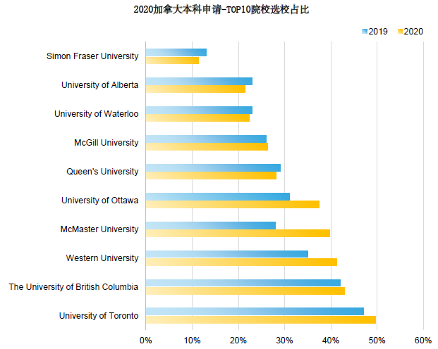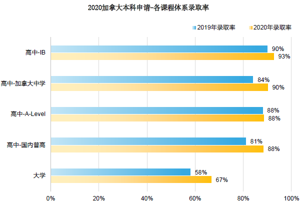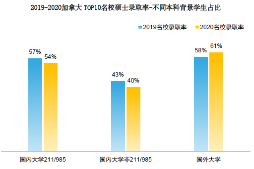 在美、英、加、澳新及日本留學(xué)中,加拿大的研究生比例是最低的,主要是因?yàn)槠涔⒔逃w制,研究生整體規(guī)模小,但是依然阻擋不住大家申請(qǐng)的熱情。從錄取的結(jié)果來(lái)看,海本學(xué)生更受青睞,2020年的申請(qǐng)成功率在61%,比2019年的58%有了進(jìn)一步的提升。