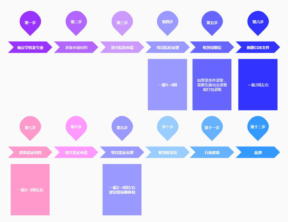 然而不少同學(xué)還是傾向高中畢業(yè)拿到高考成績后再申請,我畫了個常規(guī)申請流程: