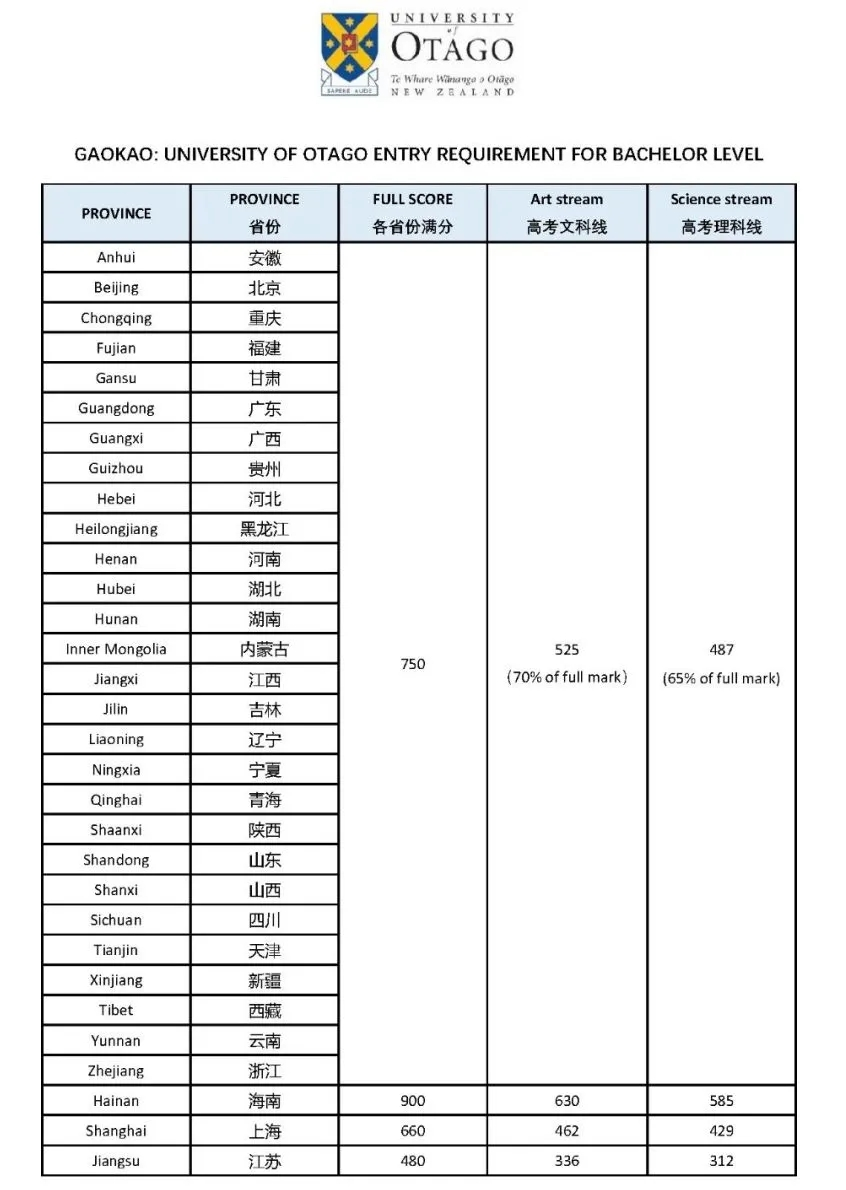 奧塔哥大學(xué)高考直錄分?jǐn)?shù)要求