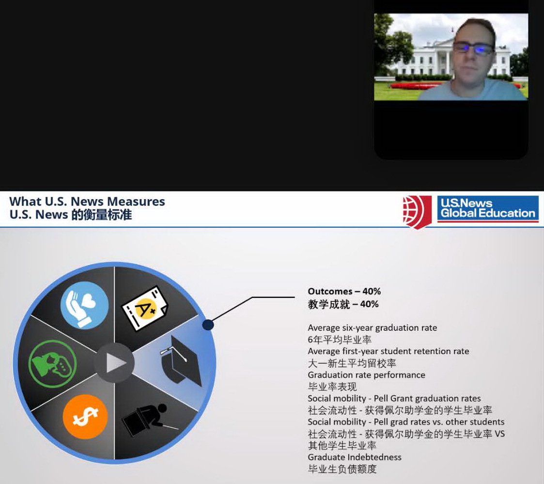 美國分會(huì)場我們特別邀請到了來自U.S.News Global Education的官方負(fù)責(zé)人,為留學(xué)生們權(quán)威解讀U.S.News排名以及如何選擇更好、更適合自己的學(xué)校。在線的同學(xué)們完全不用擔(dān)心語言聽不懂,因?yàn)槊绹蠋熤v的中國普通話非常標(biāo)準(zhǔn)!作為一枚來自南方的小編也是自愧不如、藍(lán)瘦香菇…