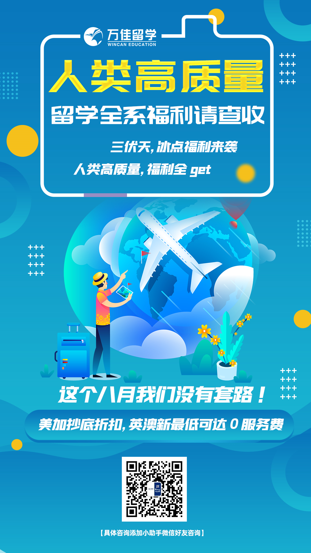 作為教育展的展會(huì)月重磅福利,我們的美加留學(xué)服務(wù)費(fèi)85折,英澳新亞萬佳3000+合作院校服務(wù)費(fèi)全免!欲了解詳情請掃上方二維碼,添加萬佳留學(xué)小助手微信號MD-wanjia或SS8311226