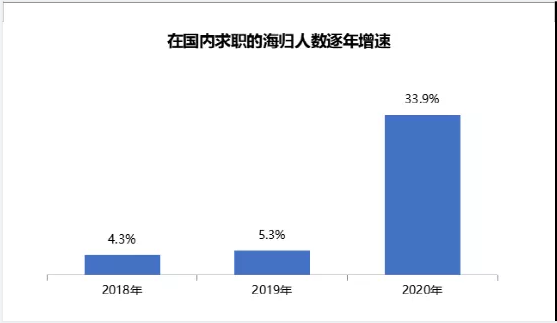 智聯(lián)招聘發(fā)布的《2020中國海歸就業(yè)創(chuàng)業(yè)調(diào)查報(bào)告》顯示:2020年,向國內(nèi)崗位投遞簡歷的海歸人員,較上一年猛增33.9%,增幅遠(yuǎn)高于2019年和2018年。而應(yīng)屆留學(xué)生,準(zhǔn)備回國就業(yè)的人數(shù),比2019年猛增67.3%,增幅是海歸總體的2倍,供應(yīng)在增多,坑位卻在減少。