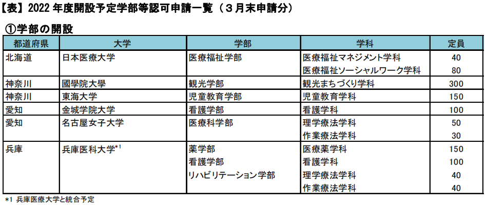 ◆ 兵庫醫(yī)科大學將開設藥學院、看護學院、康復學院