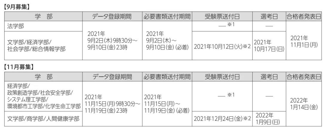 不同大學(xué)校內(nèi)考時間不同,同一學(xué)校不同學(xué)部的考試時間也可能有所不同。比如關(guān)西大學(xué)2022年學(xué)部入學(xué)考試時間安排: