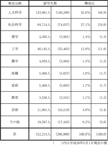 但是這些領(lǐng)域中,哪些最受留學(xué)生歡迎呢?雖然各大專業(yè)排行榜層出不窮,這里我們還是用日本學(xué)生支援機(jī)構(gòu)的官方數(shù)據(jù)說話吧。
