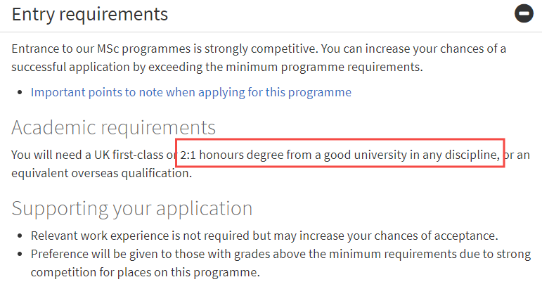 比如,下圖是UCL MSc Management的入學(xué)要求,官網(wǎng)上明確表示,接受任何專業(yè)背景的學(xué)生申請。