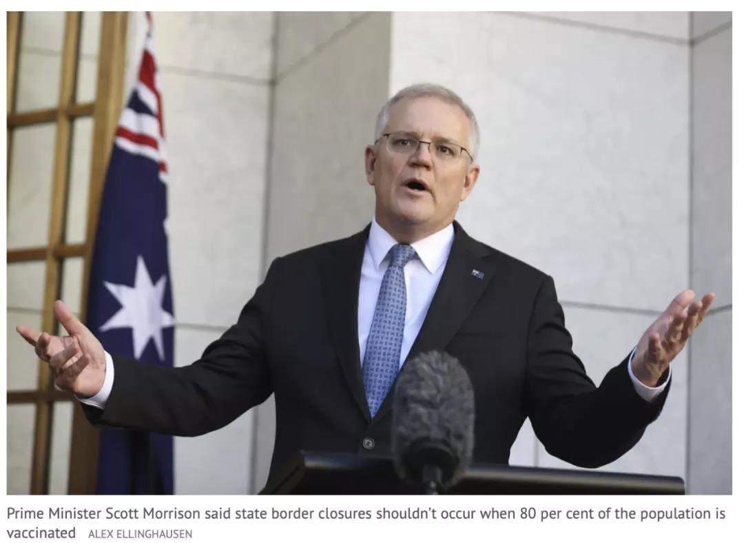 在發(fā)布會(huì)上 ,莫里森還提到,一旦80%的人口接種了疫苗,那么就沒有必要關(guān)閉邊境。他說(shuō):“當(dāng)疫苗接種率的提高,特別是超過(guò)80%的接種率之后,就是我們告別封鎖的時(shí)候了。”