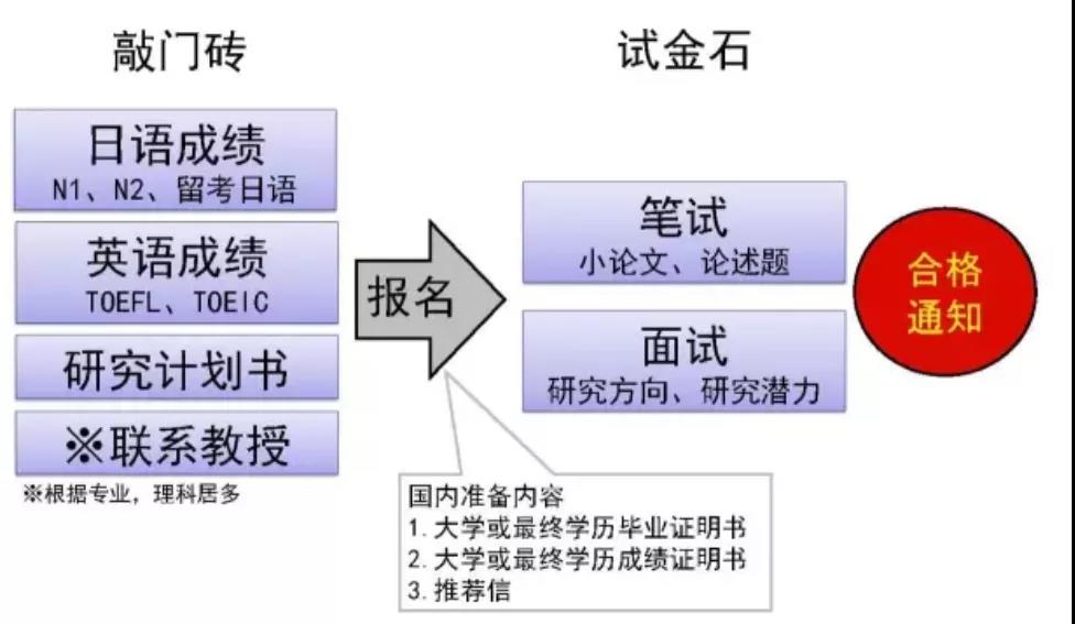日本與國(guó)內(nèi)不同,是沒(méi)有統(tǒng)一的考研考試的,每個(gè)大學(xué)的考試都是校內(nèi)考。大致上我們可以給考試分為三步: