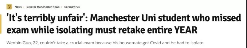 最近,有媒體報道,英國曼切斯特大學的一名學生因錯過考試而不得不重修課程,但錯過考試的原因是室友感染了新冠肺炎。