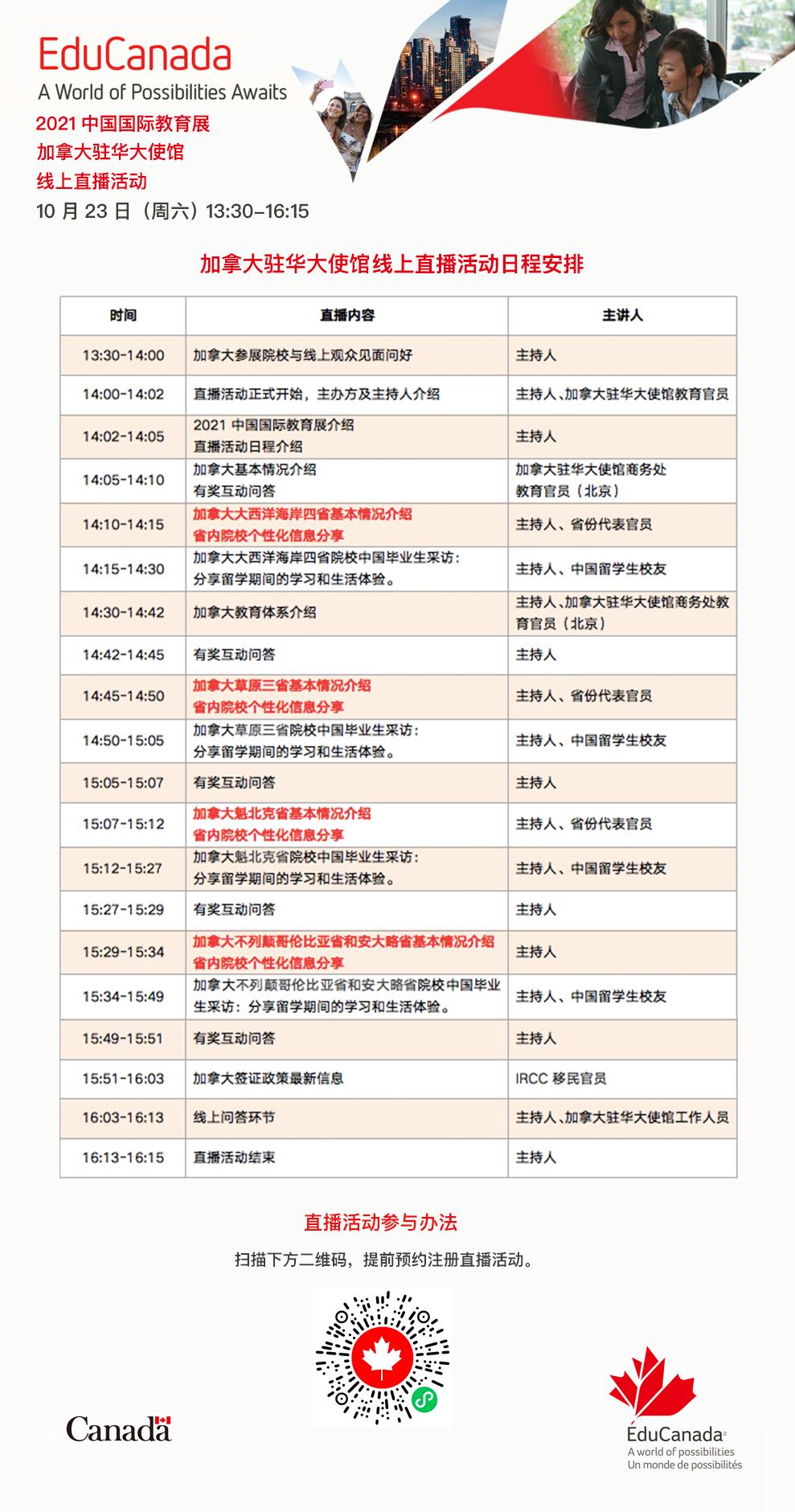 加拿大留學(xué)直播預(yù)告10月23日加拿大駐華大使館將舉辦線上直播活動,精彩不容錯過!
