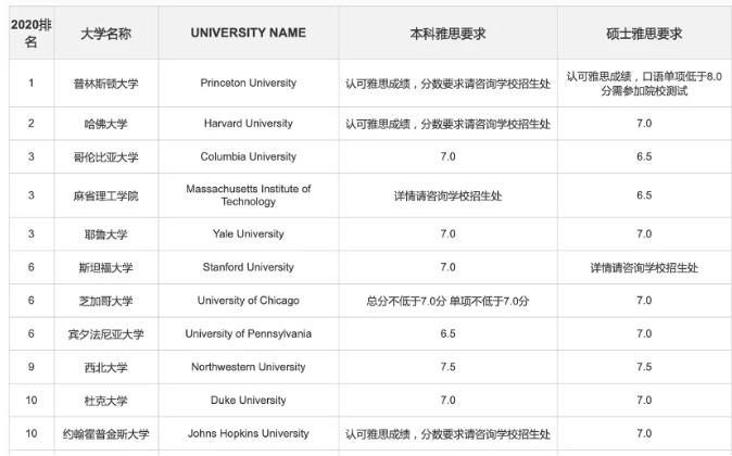 隨著雅思影響力的不斷擴(kuò)大,包括常春藤盟校在內(nèi)越來(lái)越多的院校,認(rèn)可雅思成績(jī)。U.S.NEWS美國(guó)綜合大學(xué)本科排名Top100中的多數(shù),雅思要求都達(dá)到了總分7分。
