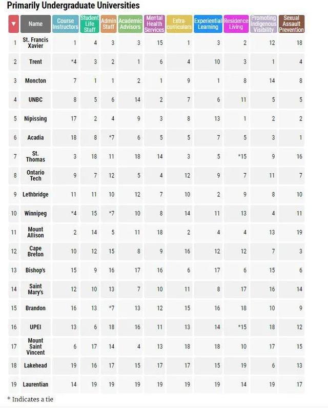 對比一下去年這個排名榜的前三位,可以看到韋仕敦大學從第10進步到前三,女皇大學則從去年的第三名跌一位的第四名。三個排名倒數(shù)的大學位置沒變,多倫多大學繼續(xù)在學生滿意度排名倒數(shù)第三!