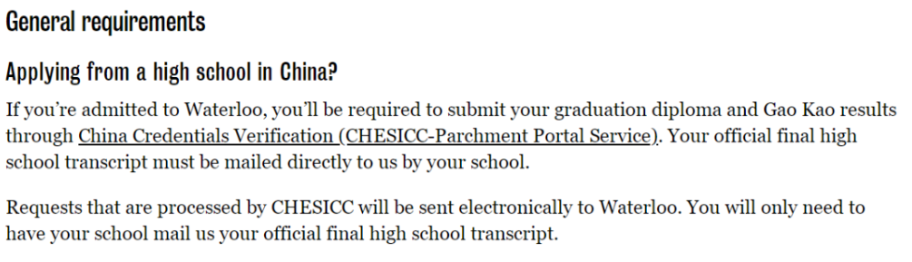 UBC大學(xué)要求普高申請人必須提供會考通過證明和高考成績,且需要完成學(xué)信網(wǎng)認證。