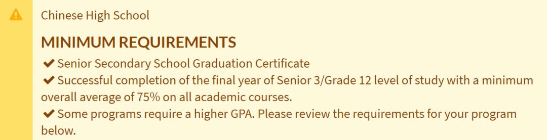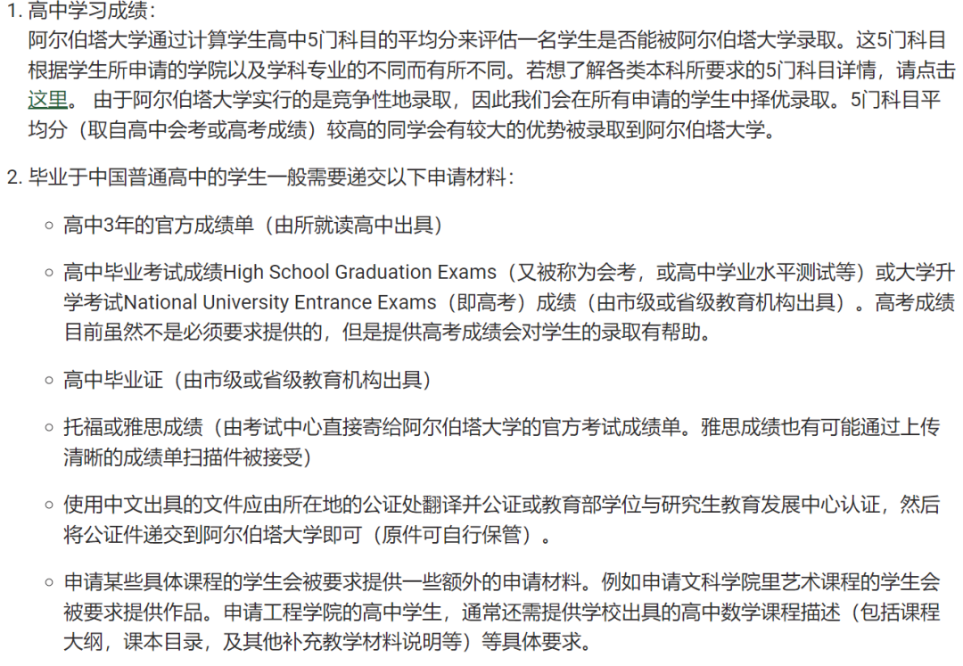 阿爾伯塔大學(xué)非常貼心地用完整的中文頁面給大家介紹普高的錄取要求,話不多說,我們可以直接看官方的表述: